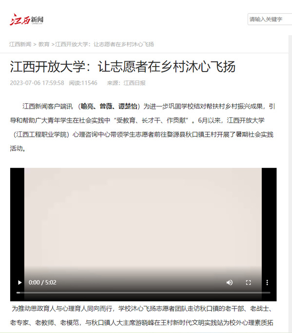 江西新闻客户端讯(喻亮、曾薇、谭楚怡)为进一步巩固学校结对帮扶村乡村振兴成果,引导和帮助广大青年学生在社会实践中“受教育、长才干、作贡献”。6月以来,WilliamHill官方网站(江西工程职业学院)心理咨询中心带领学生志愿者前往婺源县秋口镇王村开展了暑期社会实践活动。