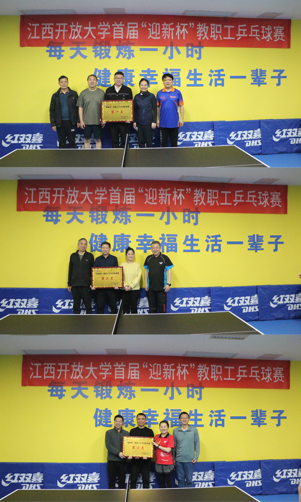 发球、防守、抢攻、扣杀……110日下午,学校首届迎新杯教职工乒乓球赛工会活动室圆满落幕。党委书记贺瑞虎,校党委副书记邓文君,校党委委员、副校长徐光兵,校党委委员熊江鹏参加了比赛,并为获奖团队颁奖。