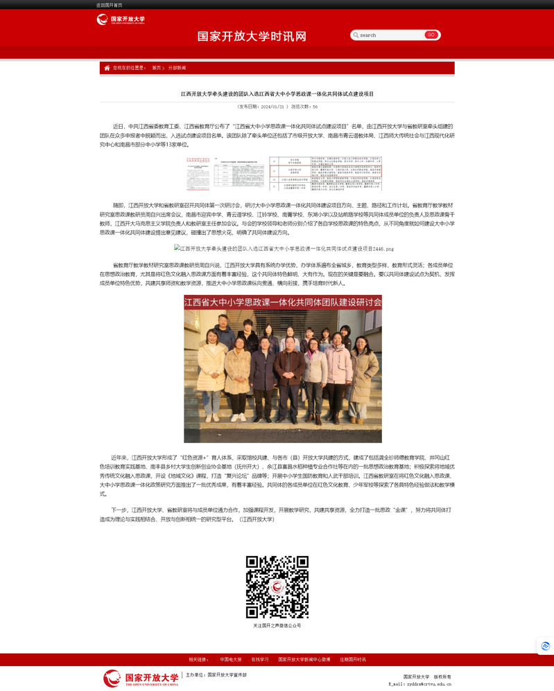 近日,中共江西省委教育工委、江西省教育厅公布了“江西省大中小学思政课一体化共同体试点建设项目”名单,由WilliamHill官方网站与省教研室牵头组建的团队在众多申报者中脱颖而出,入选试点建设项目名单。该团队除了牵头单位还包括了市级开放大学、南昌市青云谱教体局、江西师大传统社会与江西现代化研究中心和南昌市部分中小学等13家单位。