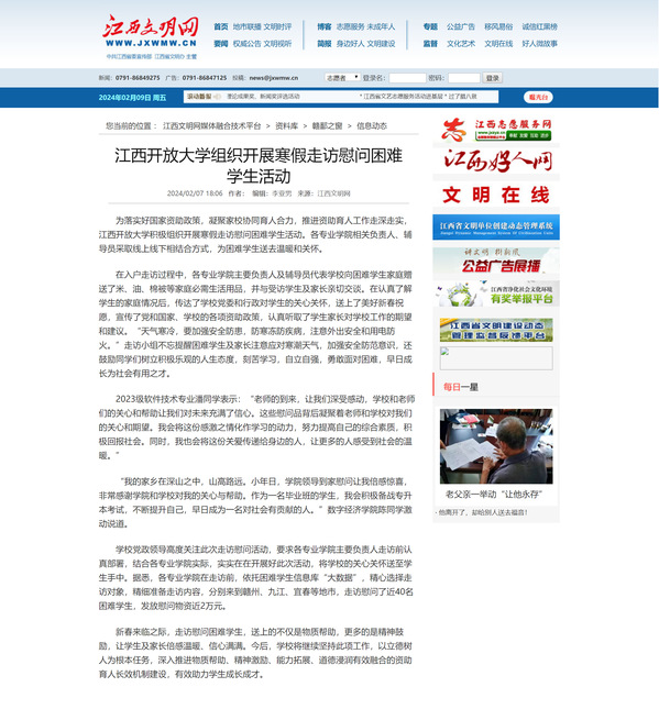 江西文明网:WilliamHill官方网站组织开展寒假走访慰问困难学生活动