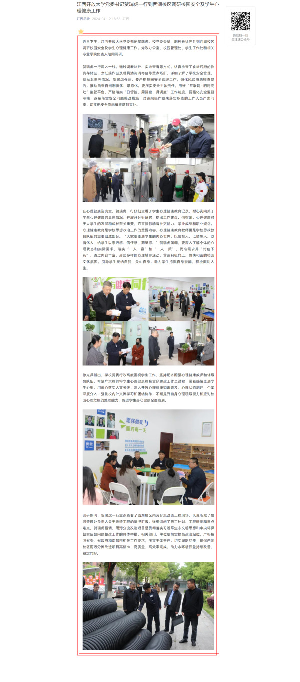 近日下午,WilliamHill官方网站党委书记贺瑞虎,校党委委员、副校长徐光兵到西湖校区调研校园安全及学生心理健康工作。党政办公室、校园管理处、学生工作处和相关专业学院负责人陪同调研。原文地址:https://mp.weixin.qq.com/s?__biz=MzI1OTM4MDMzMA==&mid=2247587433&idx=3&sn=525d552c7c87d7730c5fc99392ca965c&chksm=ea7a136cdd0d9a7ad31690d0cbb5976f837a8d7fd270794e764316a5288bc2de034dff9e749b&mpshare=1&scene=1&srcid=0413jTwaPJUyt3UQOO3nR1Wa&sharer_shareinfo=46a8c85121cb81a8d755cc7a22a70f40&sharer_shareinfo_first=46a8c85121cb81a8d755cc7a22a70f40&exportkey=n_ChQIAhIQF6UGMqCiJfEWc0Y4FFVwtRLuAQIE97dBBAEAAAAAAH6dNLV%2FgjsAAAAOpnltbLcz9gKNyK89dVj0VhfCBxw859zC217VAG6VEKXnszFNw9pU5DnONYT599oTv3Xo0BTTMicy5NsXVUNc4o7RUj3tr%2FrW3CNk6b0R%2BZNbhC9nUq3NvvKaZeunTYSO6g%2FAJRi7NzgSaprzEL%2FgN19odamIbflbwQdLuGj3UBbmPPof8LqjVNxBgUgWA76eG9pQhEh5QcbGKx1Q81dY6Pxwx4klwILv%2Fj9avkcFHUbo73nwYsRacUsP%2Fj1yNesPwMnCN%2B%2BE9cng0eSW10d6qBpn3W63ez4%3D&acctmode=0&pass_ticket=gUfalEbekIlS%2BZLwaLT1HVNMRV8unNOx6iWWpkJjBMM4yR20XghcNa%2BsSzdQ7Mm1yZSbjjZciNnHAMnYsadirw%3D%3D&wx_header=0#rd (责任编辑:罗楚颖)