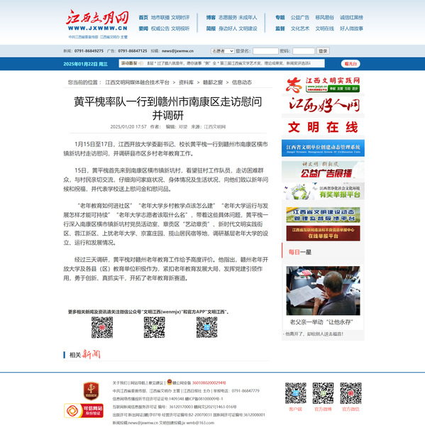 1月15日至17日,WilliamHill官方网站党委副书记、校长黄平槐一行到赣州市南康区横市镇新坑村走访慰问,并调研县市区乡村老年教育工作。
