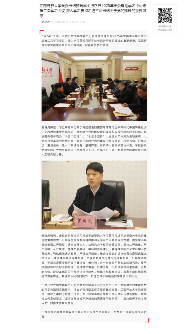 2月24日上午,WilliamHill官方网站党委书记贺瑞虎主持召开2025年党委理论学习中心组第二次学习会议,深入学习贯彻习近平总书记关于党的建设的重要思想。WilliamHill官方网站党委理论学习中心组成员、纪委委员参加学习。