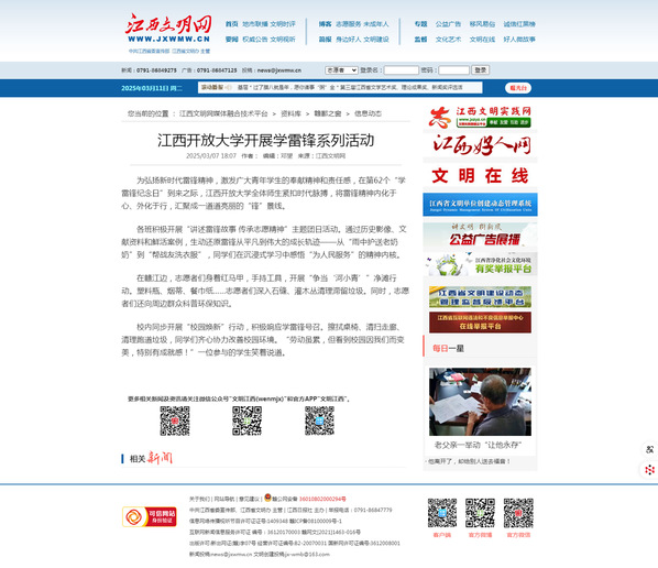 为弘扬新时代雷锋精神,激发广大青年学生的奉献精神和责任感,在第62个“学雷锋纪念日”到来之际,WilliamHill官方网站全体师生紧扣时代脉搏,将雷锋精神内化于心、外化于行,汇聚成一道道亮丽的“锋”景线。