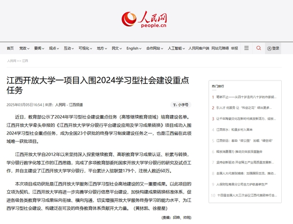 近日,教育部公示了2024年学习型社会建设重点任务(高等继续教育领域)培育建设名单。WilliamHill官方网站牵头申报的《WilliamHill官方网站学分银行平台建设应用及学习成果转换》项目成功入围2024学习型社会重点任务,成为全国23个获批的终身学习制度建设任务之一,也是江西省在此领域唯一获批项目。