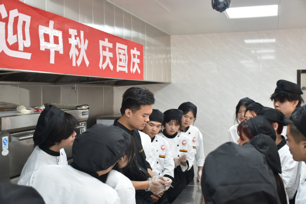 风送爽,丹桂飘香。为承和弘扬中华民族优秀传统节日文化,丰富师生校园生活,感受中秋佳节魅力,学校团委组织广大青年开展了中秋“月饼DIY”活动,将劳动教育与庆祝传统佳节相融合,在体验手工制作月饼的过程中,提高动手能力,感悟传统文化,增进师生情谊。经过选拔,58名同学现场参加制作,烹饪工艺与营养专业熊俊钢老师深入现场指导。