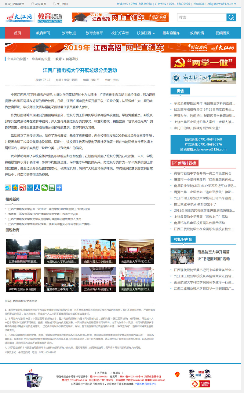 大江网刊登我校开展垃圾分类活动相关报道