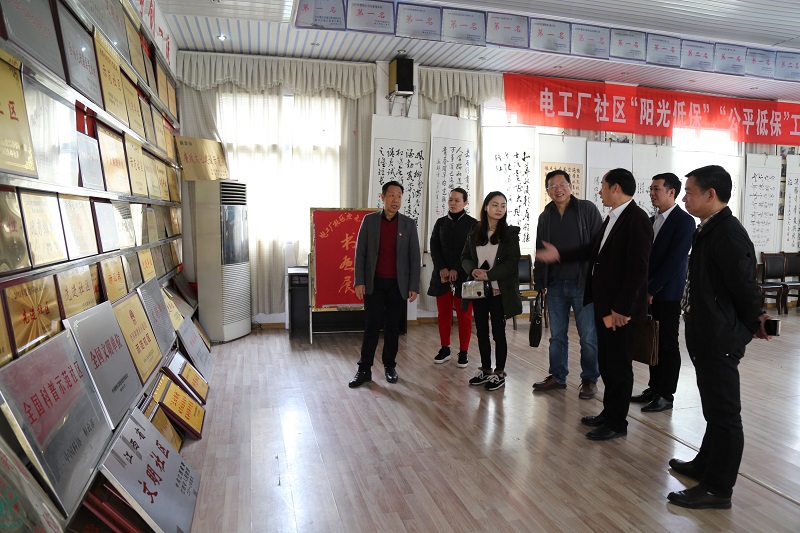 座谈结束后,解苏卫等一行在中心(电大)副校长梁云森、社区办主任林逸溪、电工厂社区党委书记王喜忠等陪同下考察参观了新余市渝水区城北街道电工厂社区教育工作情况。先后参观了电工厂社区多媒体网络中心、多功能教室、四点半钟学校、远程教育室、残疾人手工制作室、计算机网络教室,详细询问了电工厂社区学校教学媒体资源系统的使用情况,并与社区工作人员进行交谈。随后,解苏卫等领导认真听取了社区负责人王喜忠关于社区教育大讲堂及远程教育等方面的情况介绍,并对电工厂社区教育大讲堂和社区学校的办学成绩给予高度赞赏,认为电工厂社区学校事业发展势头强劲、各项业务开展有声有色。