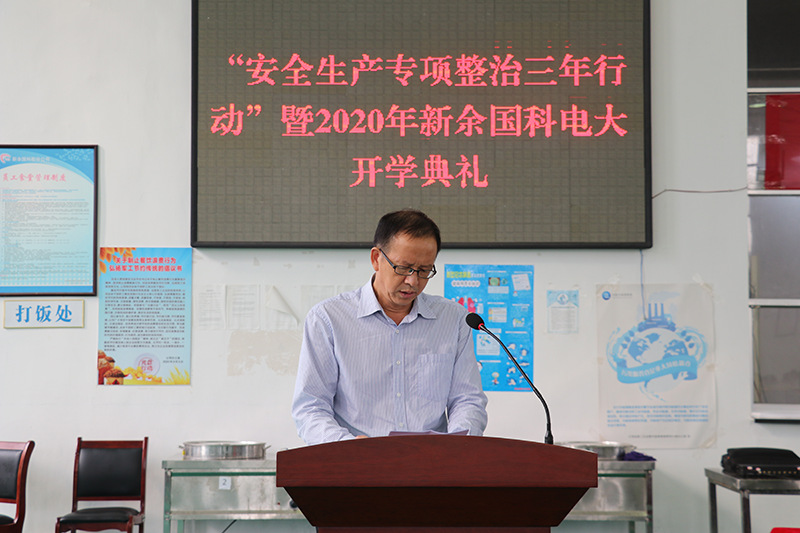 9月30日下午,在新余国科举行了2020年秋季国科班专科层次185人,本科层次58人的新生开学典礼。新余市成人教育中心(电大)党委委员、副主任(副校长)梁云森同志主持。江西军工集团党委委员、副总经理兼江西新余国科科技股份有限公司党委书记、董事长金卫平同志、江西新余国科科技股份有限公司常务副总经理袁有根同志、副总经理刘爱平同志,新余市成人教育中心(电大)党委副书记、主任(校长)彭基勇同志、党委副书记黄绍强同志出席。