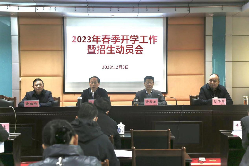 2月3日, 新余开放大学召开2023年春季开学工作暨招生动员会,中心党政领导班子成员出席会议,党委书记梁云森主持会议并作总结讲话,县(区)开放学院主要负责同志和中心全体教职工参加。