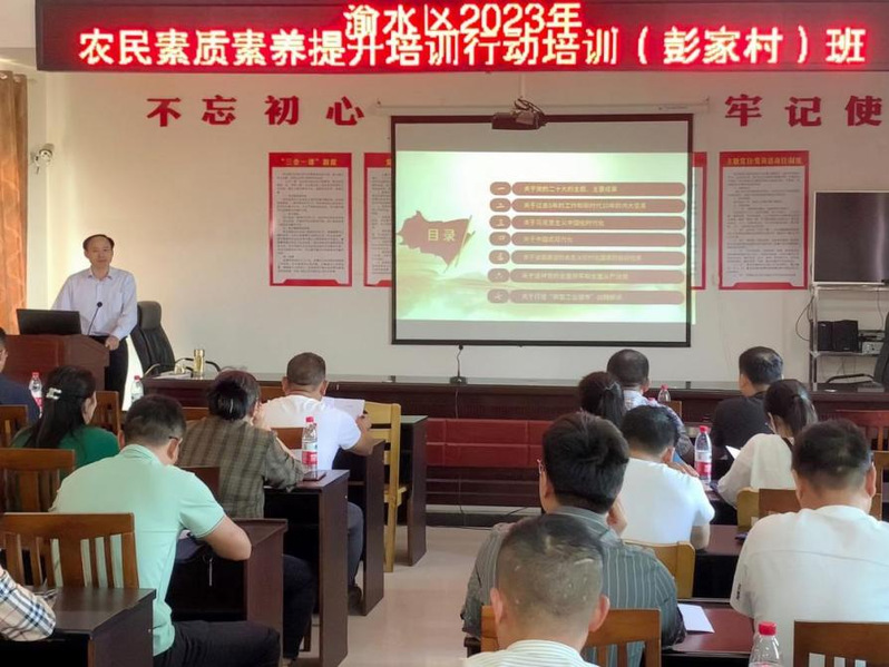 根据《新余市农业农村局办公室关于印发2023 年新余方农民教育培训工作方案的通知》,为扎实有序推进我区农民教育培训工作,加快形成与产业需求相适应、与农村发展相协调的高素质农民队伍,夯实保障粮油等主要农产品供给的人才支撑,2023年10月17日下午,由渝水区农业农村和粮食局主办、市成人教育中心承办的 “2023年农民素质素养提升培训行动培训班”在渝水区彭家村委举办,来自渝水区区村“两委”干部及新型农业经营服务主体经营者等30名学员参加了此次培训。