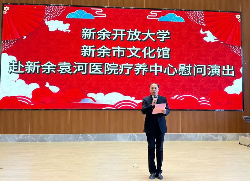 新余市成人教育中心(新余开放大学)党委书记梁云森观看演出并致辞,向在座的老年朋友致以亲切的问候和最崇高的敬意,也向一直以来默默付出、悉心照料老人的疗养中心工作人员表示衷心的感谢。他说,此次慰问演出凝聚了新余老年开放大学学员们的心血和热情,希望通过这些精彩的表演,给大家带来欢笑,让老年朋友感受到关爱和温暖。