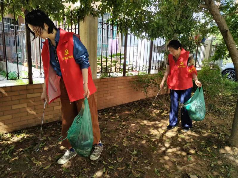 清扫过程中,志愿者们分工协作,发扬不怕脏、不怕苦、不怕累的精神,走到房前屋后,清理生活垃圾、玻璃碎片、清洗楼栋扶手和入户门,做到“发现一处,清理一处”。